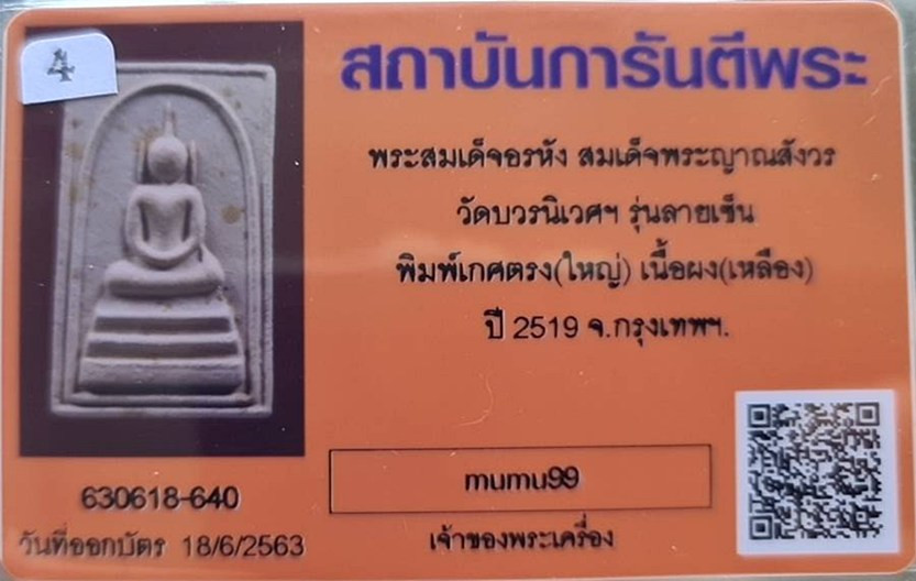 พระพุทธนวราชบพิตร พระพิมพ์จิตรลดา โครงการหลวง ปี 2539 เนื้อเงิน พิมพ์เล็ก มีกล่อง |