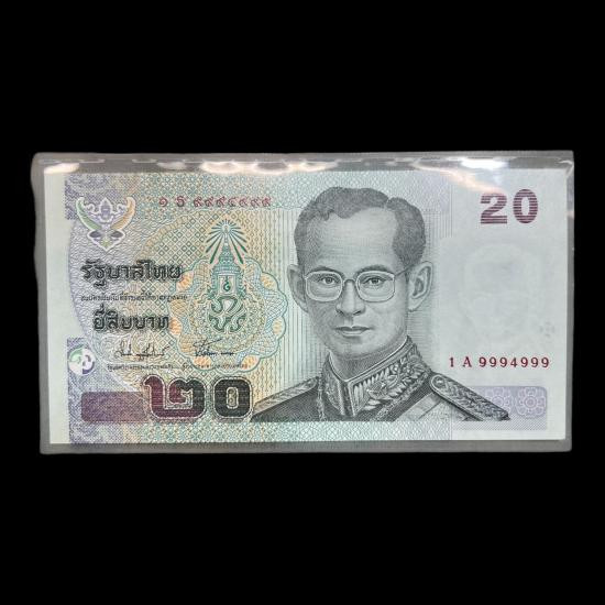 เลฃสวย!! แบงค์ 20 บาท แบบ 15 ในรัชกาลที่ 9 เลข 1A (ธ) 9994999 UNC |