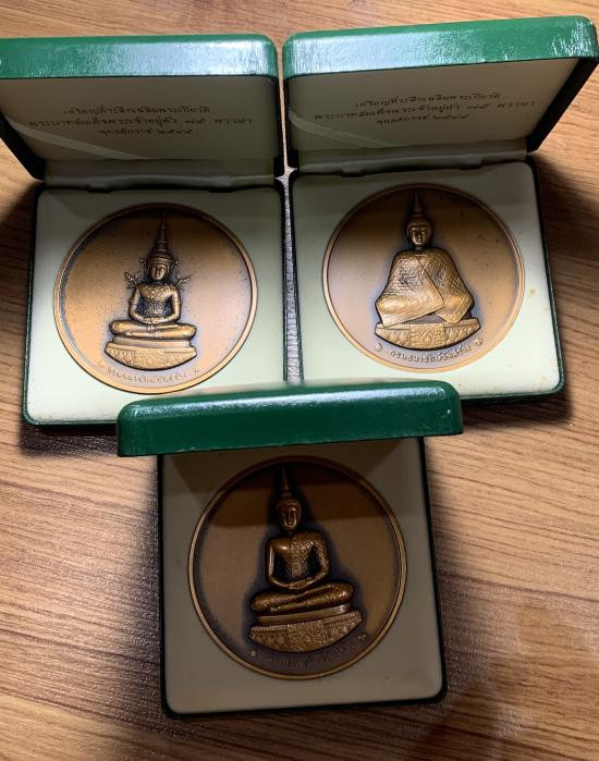เหรียญพระแก้วมรกต หลัง ภปร ปี 2545 เนื้อทองแดง ขนาด 7 เซนติเมตร ครบชุด 3 พิมพ์ พร้อมกล่องเดิมๆ หายากมากๆ เคาะเดียวครับ |