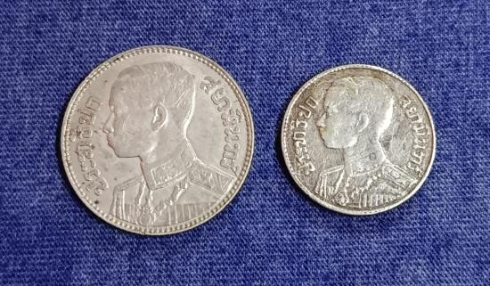 เหรียญเงิน 1 บาท รุ่นพระบรมรูป-ตราแผ่นดิน (ไม่มี ร.ศ.) และเหรียญรัชกาลที่6 |