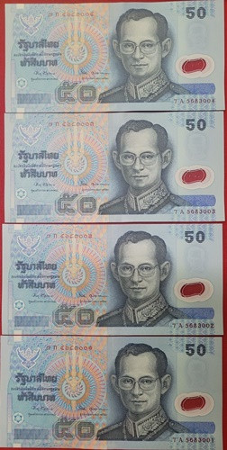 ธนบัตร 50บาท ร.9 เลขเรียงกัน 4ฉบับ สภาพใหม่ UNC |