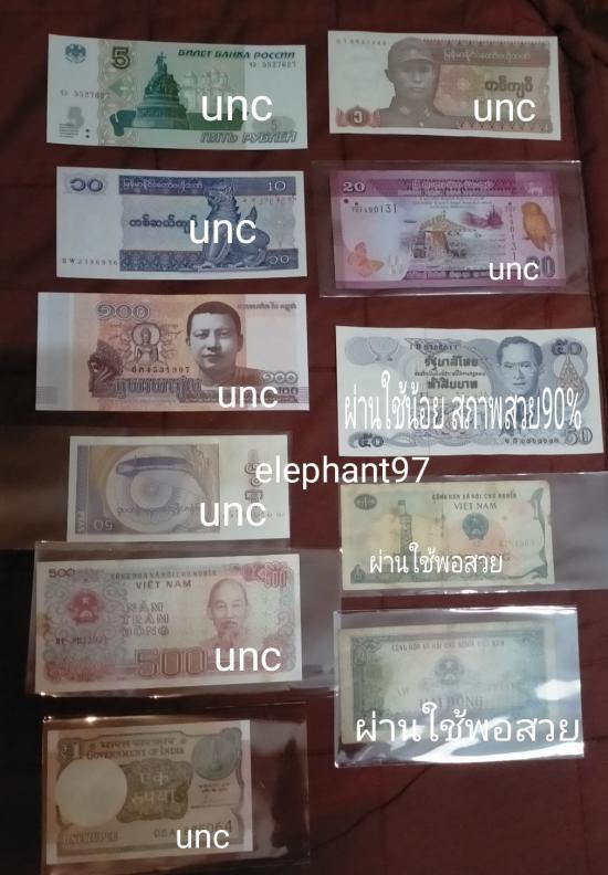 Lot สวย*AAAธนบัตรไทย+ต่างประเทศจำนวน[รวม11ฉบับ]ตามรายละเอียดกำกับในรูปใช้หมุนเวียนในระบบเงินจริงมีลายน้ำมีเลขฉบับกำกับสวยทุกฉบับพร้อมซองใส่บรรจุ |