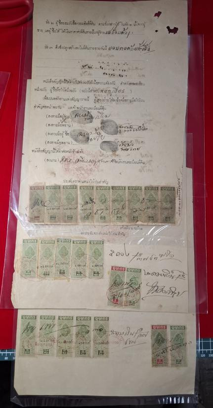 เอกสารเก่า ติดแสตมป์รัชกาลที่5, แสตมป์ฤชากร ยุค ปี 24xx มีดวง10บาทแก้เป็น5บาท,4บาท,1บาท(หายาก) |