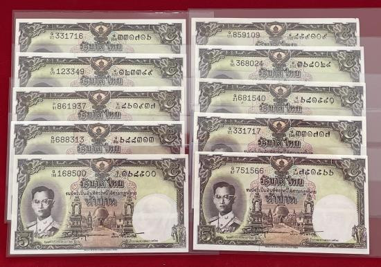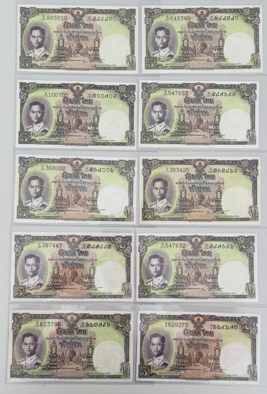 ธนบัตร รัชกาลที่ 9 แบบ 9 ชนิด 5 บาท จำนวน 10 ใบ สวยตามรูป |