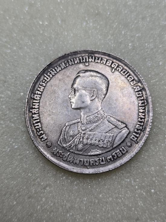 เหรียญเนื้อเงิน ครองราชย์ครบ 25 ปี พ.ศ.2514 ในสมัยรัชกาลที่ 9 หน้าเหรียญ 10 บาท สภาพสวยไม่ผ่านการใช้งาน (2) |