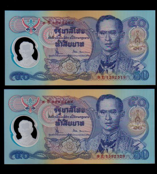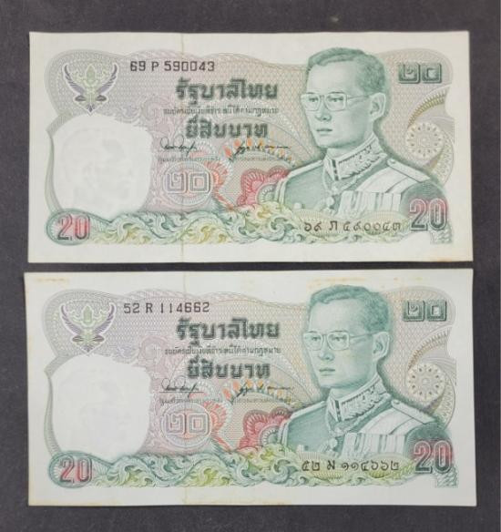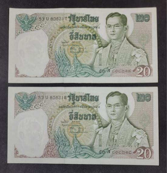 ธนบัตร 20 บาท หลังเรืออนันตนาคราช 2 ฉบับ เลขเรียง |