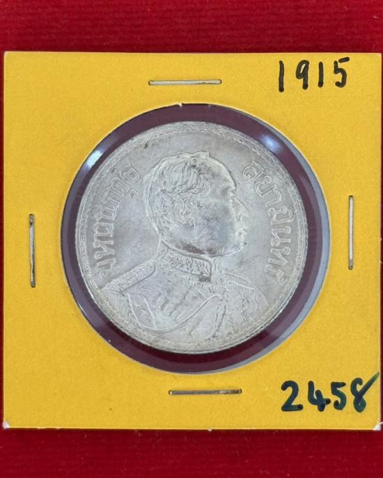 *วัดใจ* เหรียญ 1 สลึง รัชกาลที่๕ เนื้อเงิน มีรอยจาร |