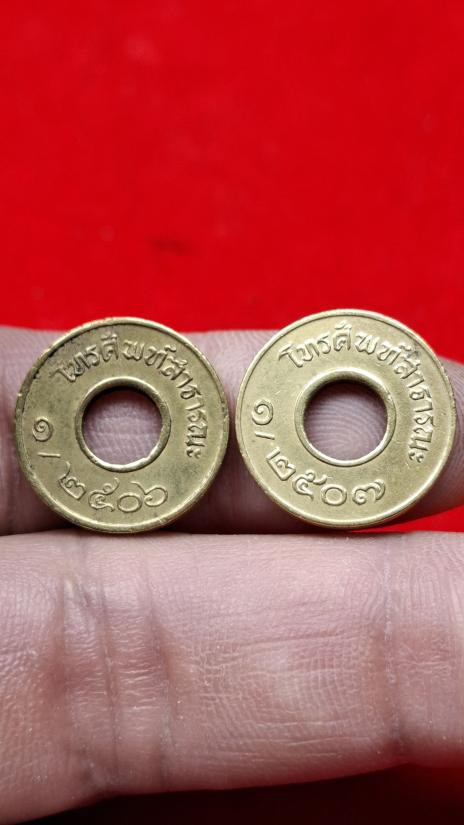เหรียญในภาพคือเหรียญโทรศัพท์สาธารณะยุคเก่า เหรียญด้านซ้ายผลิตในปี พ.ศ. 2506 และเหรียญด้านขวาผลิตในปี พ.ศ. 2507 |