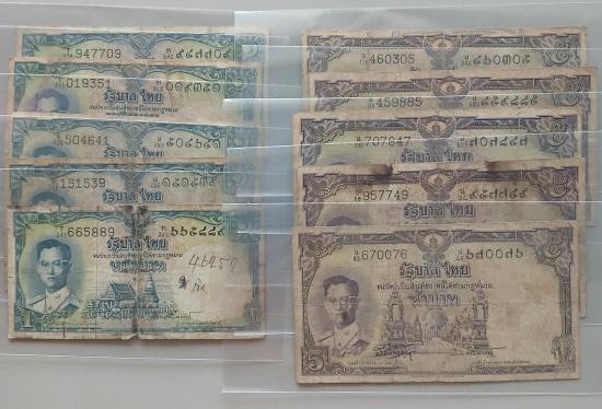 ชุดธนบัตร รัชกาลที่ 9 แบบที่ 11 ธนบัตร 5 บาท จำนวน 1 ใบ ธนบัตร 100 บาท จำนวน 1 ใบ ธนบัตร 20 บาท จำนวน 1 ใบ ธนบัตร 50 บาท จำนวน 1 ใบ ธนบัตร 10 บาท จำนวน 1 ใบ |