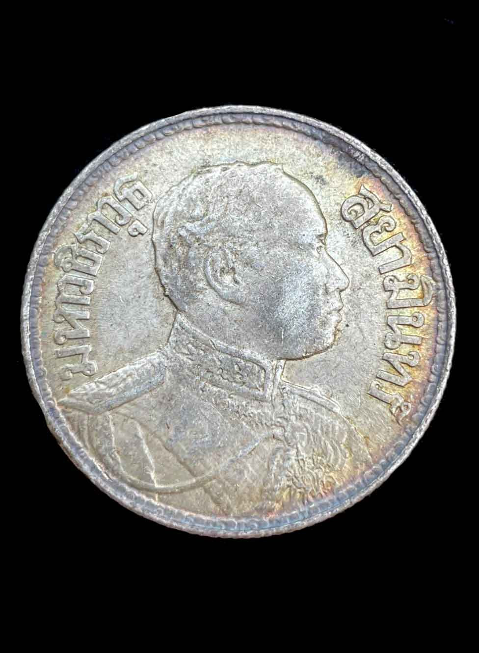 วัดใจ เหรียญเงิน 1 บาท รัชกาลที่ 6 หลังช้างสามเศียร ปี 2460 เนื้อเงิน (น้ำหนัก 15 กรัม) ##14 |