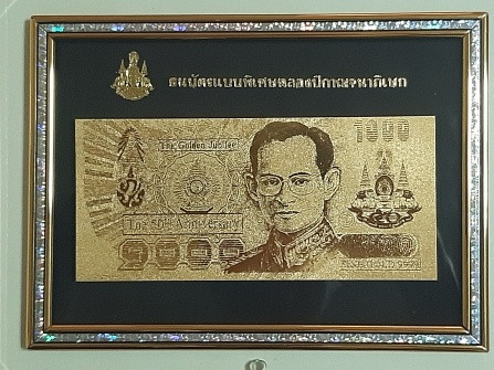 ธนบัตรทองคำ 99.99% รัชกาลที่ 9 ราคา 1,000 บาท พร้อมกรอบและสลักยึดและกล่องเดิมๆ สภาพสวยงามมากๆ (เคาะเดียว) |