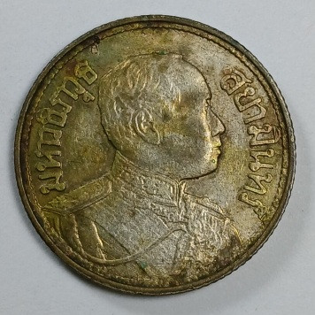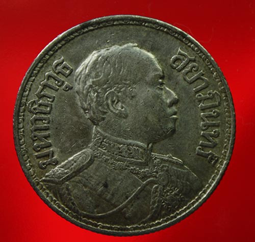 เหรียญเงินหนึ่งบาท ร .5 หลังตราแผ่นดิน ขอบสตางค์ (เคาะเดียว) |