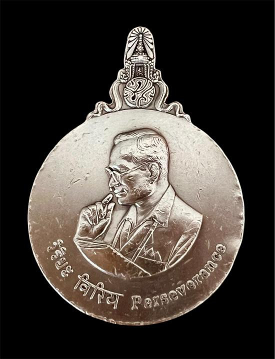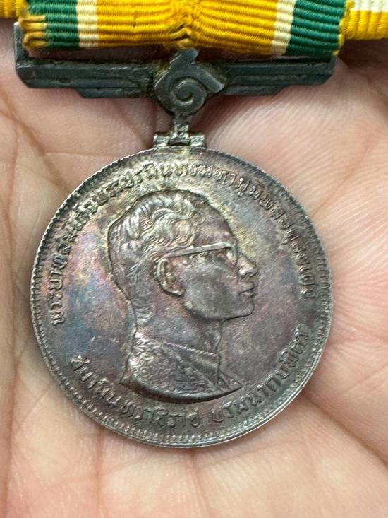 เหรียญแพรแถบที่ระลึกพระราชพิธีฉลองสิริราชสมบัติครบ 25 ปี (รัชดาภิเษก) รัชกาลที่ 9 เนื้อเงิน พ.ศ. 2514 |