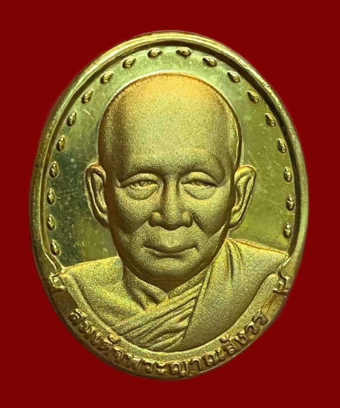 เหรียญสมเด็จพระญาณสังวร สมเด็จพระสังฆราช วัดบวรนิเวศ กรุงเทพ เนื้อกะไหล่ทอง พิมพ์ใหญ่ ปี 2534 |