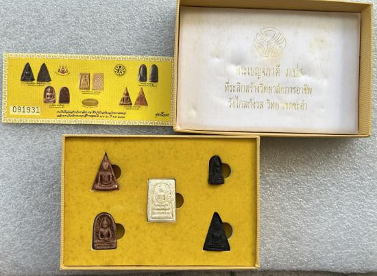 พระชุดเบญจภาคี ภปร. "หมายเลข 126732" ที่ระลึกสร้างวิทยาลัยการอาชีพวังไกลกังวล ปี49 (สภาพใหม"" ที่ระลึกสร้างวิทยาลัยการอาชีพวังไกลกังวล ปี49 (สภาพใหม่เก่าเก็บ กล่องเดิม) |