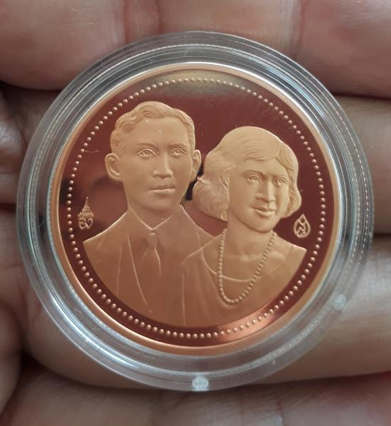 เหรียญ ร.9 เนื้อทองแดงขัดเงาพร้อมกล่องเดิม |