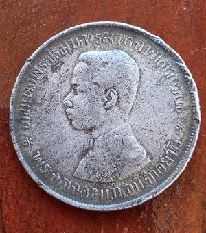 เหรียญบาทหนึ่ง ร. 5 รศ.124 เนื้อเงิน |