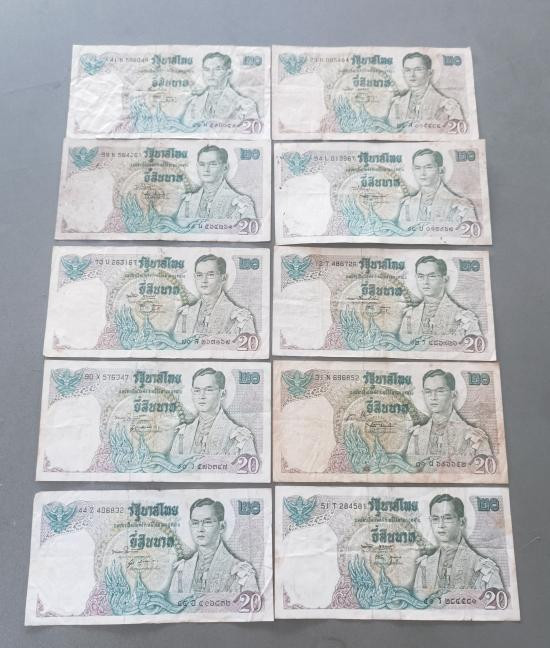 ธนบัตร 20 บาท พระที่นั่งเรืออนันตนาคราช แบบที่ 11 จำนวน 10 ฉบับ วัดใจ 20 บาทเคาะเดียวแดง |