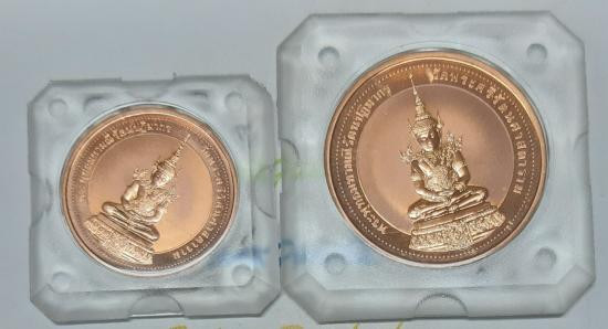 เหรียญพระพุทธมหามณีรัตนปฏิมากร พระแก้วมรกต สภามหามงกุฏราชวิทยาลัย วัดบวรนิเวศวิหาร เนื้อทองแดง พิมพ์เล็ก และพิมพ์ใหญ่ 2 เหรียญ |