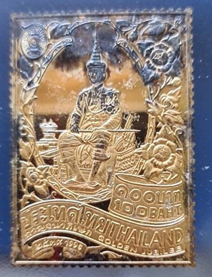 เคาะเดียว...แดง แสตมป์ทองร.9 ชุดงานฉลองสิริราชสมบติครบ 50 ปี 1ชุด(10ดวง) ปี 2539 |