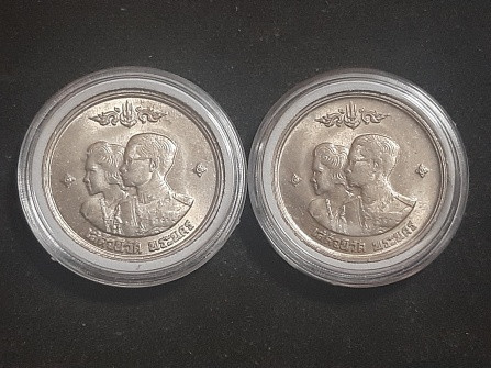 เหรียญในหลวง ร.9 เสด็จนิวัติพระนคร ปี 2504 จำนวน 2 เหรียญ พร้อมตลับพลาสติก (เคาะเดียว) |