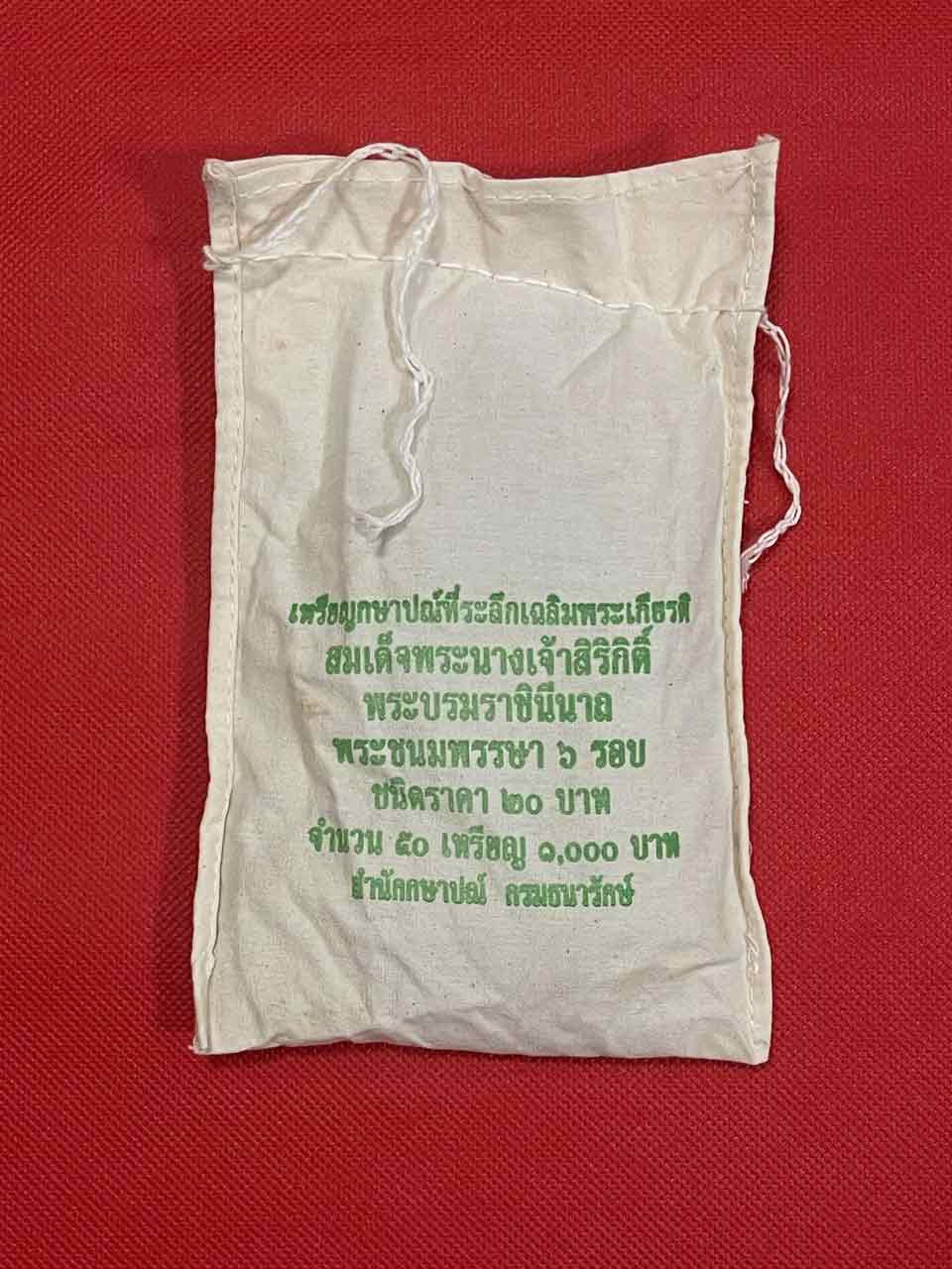 เหรียญถุง 20 บาท สมเด็จพระนางเจ้าสิริกิติ์ พระชนมพรรษา 6รอบ |