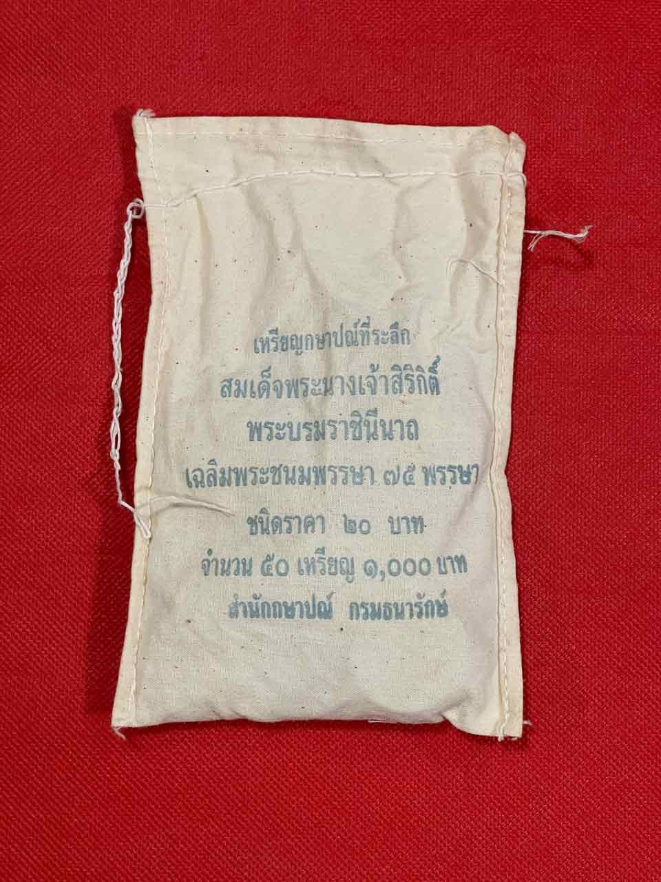 เหรียญถุง 20 บาท สมเด็จพระนางเจ้าสิริกิติ์ พระชนมพรรษา 75 พรรษา |