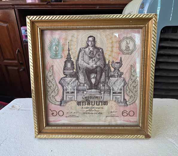 เคาะเดียว..ธนบัตร 60 บาท (บัตรธนาคาร 60 บาท) พระบาทสมเด็จพระเจ้าอยู่หัว รัชกาลที่ 9 เฉลิมพระชนมพรรษาครบ 5 รอบ พร้อมกรอบ |