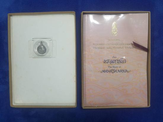 เหรียญพระมหาชนก เนื้อเงินพิมพ์เล็ก ปี 2542 พร้อมหนังสือกล่อง |