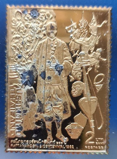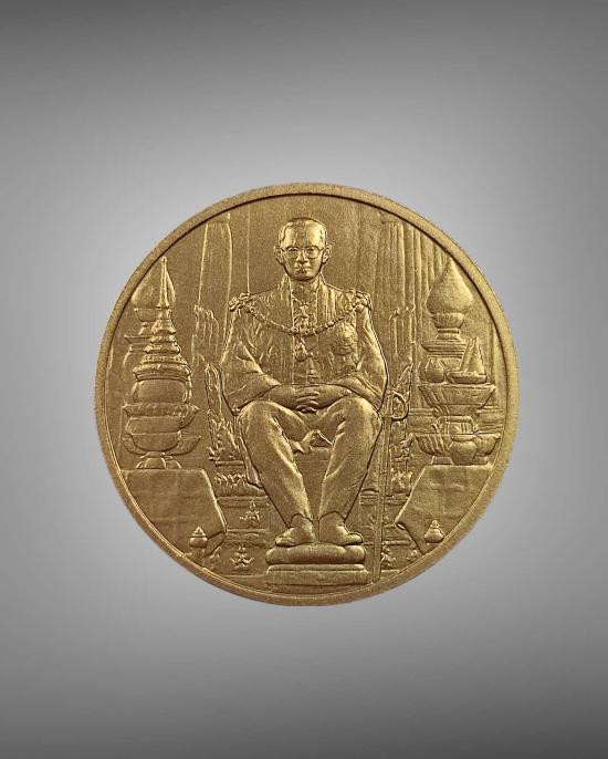 เหรียญแสตมป์ในหลวง ร.9 เนื้อเงินบริสุทธิ์ ชุบทองคำสวิส 999.9 ที่ระลึกในงานฉลองศิริราชสมบัติครบ 50 ปี |