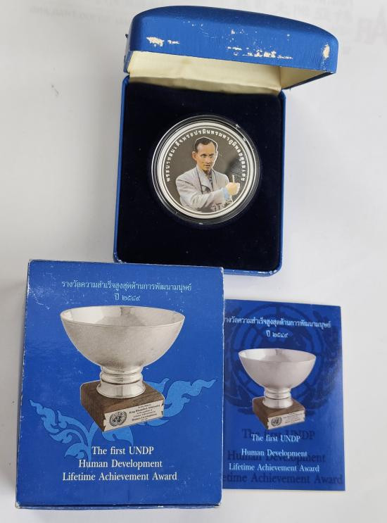 เหรียญเงินขัดเงา UNDP รางวัลความสำเร็จสูงสุดด้านการพัฒนามนุษย์ ปี2549 สภาพสวยกล่องเดิมๆเก่าเก็บ(เหรียญที่2) |