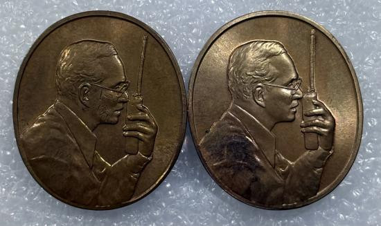 เหรียญในหลวงทรงวิทยุสื่อสาร ที่ระลึกเฉลิมพระเกียรติพระราชกรณียกิจด้านการสื่อสาร กรมไปรษณีย์โทรเลข พ.ศ.2539 เนื้อนวะโลหะ พร้อมซองเดิม จำนวน 2 เหรียญ สภาพสวยตามรูป |