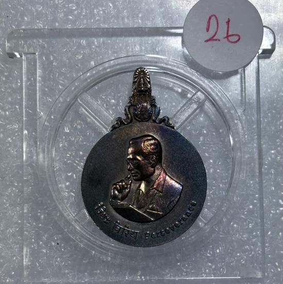 เหรียญเนื้อเงินในหลวงทรงกล้อง หรือเหรียญพระบรมฉายาลักษณ์พระบาทสมเด็จพระเจ้าอยู่หัว รัชกาลที่ 9 ขณะทรงกล้องถ่ายรูป |