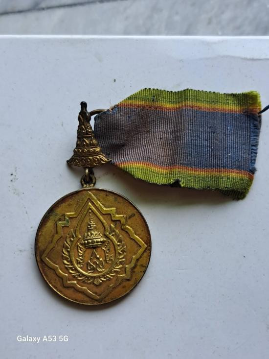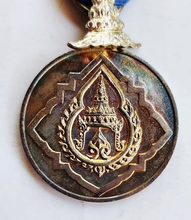 เหรียญ มงกุฎไทย หลัง จปร เนื้อเงิน สภาพสวยเดิมมาพร้อมแพรแถบ |