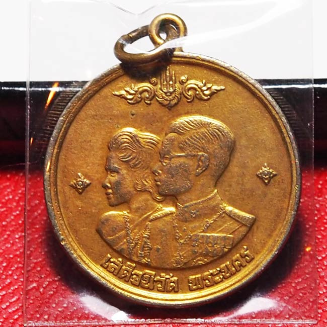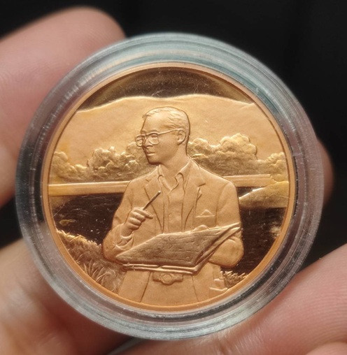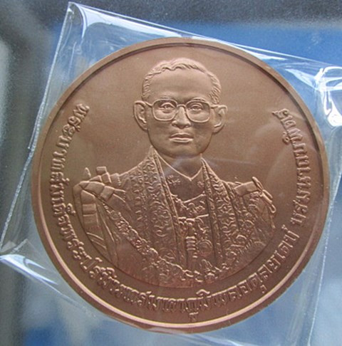 เหรียญทรงยินดี ในหลวง ร.9 เนื้อทองแดงขัดเงา ได้รับพระบรมราชานุญาตให้จัดสร้างขึ้นในปี พ.ศ.2549 โดยวัดศรีสุดาราม บางขุนนนท์ กทม. ออกแบบและผลิตโดยสำนักกษาปณ์ กรมธนารักษ์ กระทรวงการคลัง จ.น. 100 เหรียญ ถุ |