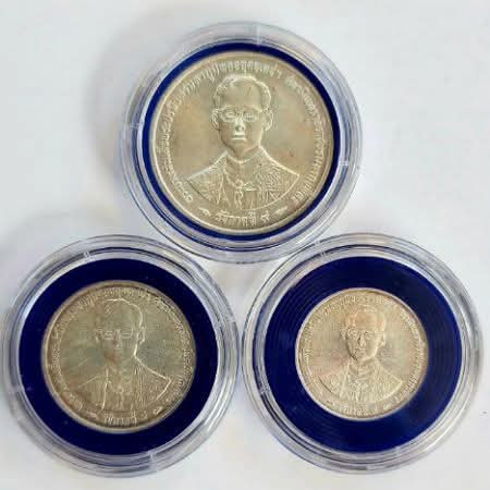 เหรียญเงิน กาญจนาภิเษก 3เหรียญหน้าเหรียญ 600 บาท 300บาท 150บาท |