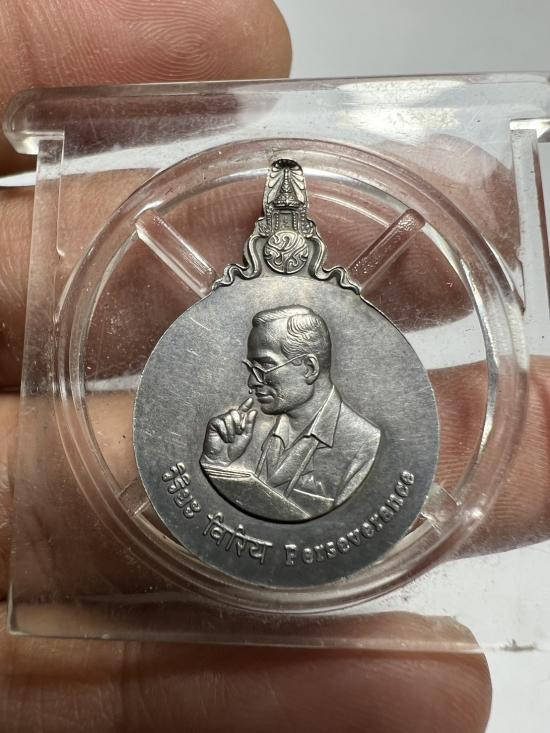 เหรียญเงินแพแถบเจ้าฟ้าชาย ร.10 ที่ระลึกพระราชพิธีสถาปนาสมเด็จพระบรมโอรสาธิราช ปี15 ซองเดิม |