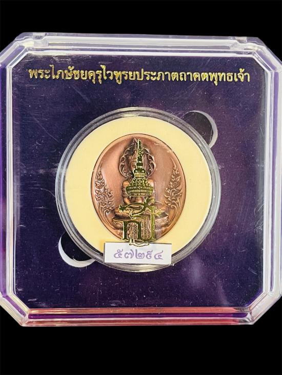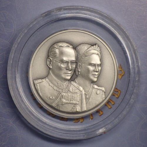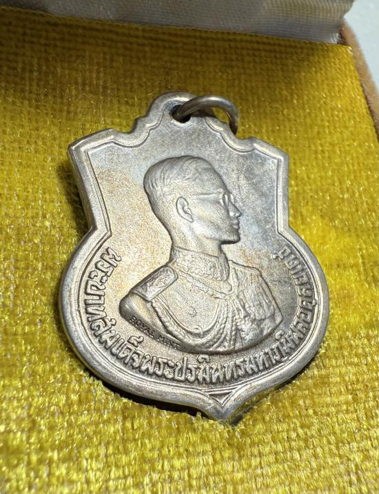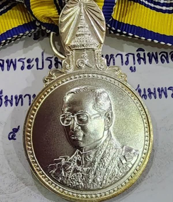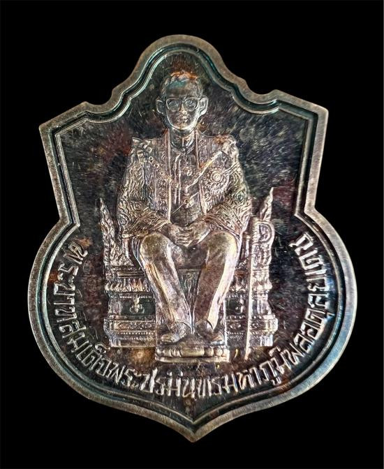 เหรียญเฉลิมพระเกียรติพระบาทสมเด็จพระเจ้าอยู่หัวรัชกาลที่ 9 ในโอกาสฉลองสิริราชสมบัติครบ 50 ปี (กาญจนาภิเษก) เมื่อปี พ.ศ. 2539 เนื้อ3K เลี้ยมเงินยกซุ้ม |