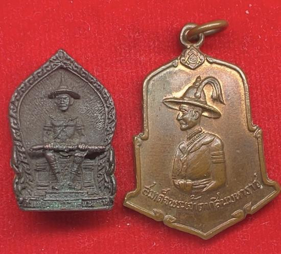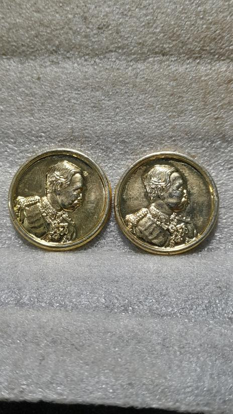 เหรียญพระมหามงกุฎ-พระแสงจักร ร.4 หนึ่งบาทและเหรียญ ร.5 หนึ่งบาท เนื้อเงิน น้ำหนัก 28.97 กรัม |