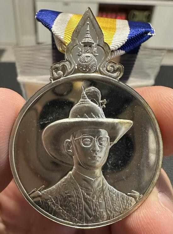 เหรียญ ร.9 ที่ระลึกพระราชพิธีฉลองสิริราชสมบัติครบ 25 ปี 2514 เนื้อเงิน พร้อมแพรแถบ |