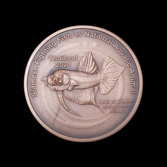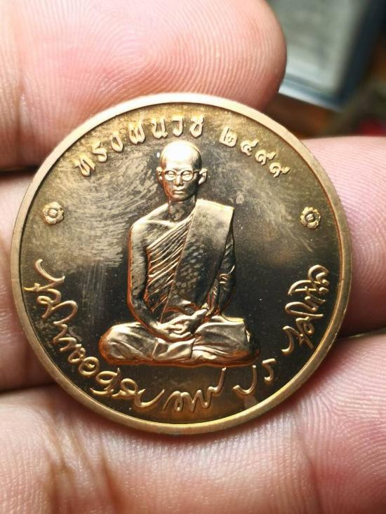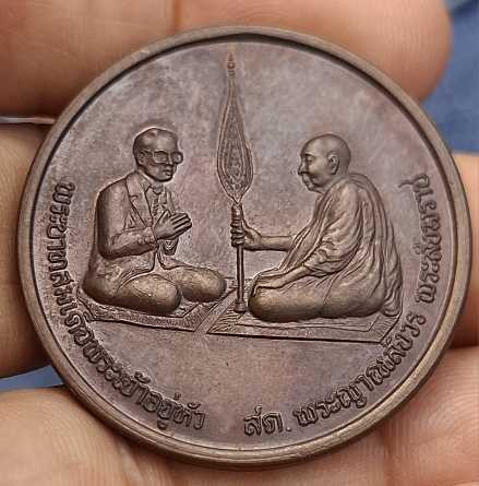 เหรียญสนทนาธรรม เป็นเหรียญที่รวมสถาบันชาติ ศาสนา และพระมหากษัตริย์ เอาไว้ในเหรียญเดียวกัน ด้านหน้าเป็นพระบรมสาทิสลักษณ์ พระบาทสมเด็จพระเจ้าอยู่หัว ทรงสดับพระธรรมเทศนาจาก สมเด็จพระญาณสังวร เนื้อทองแดง |
