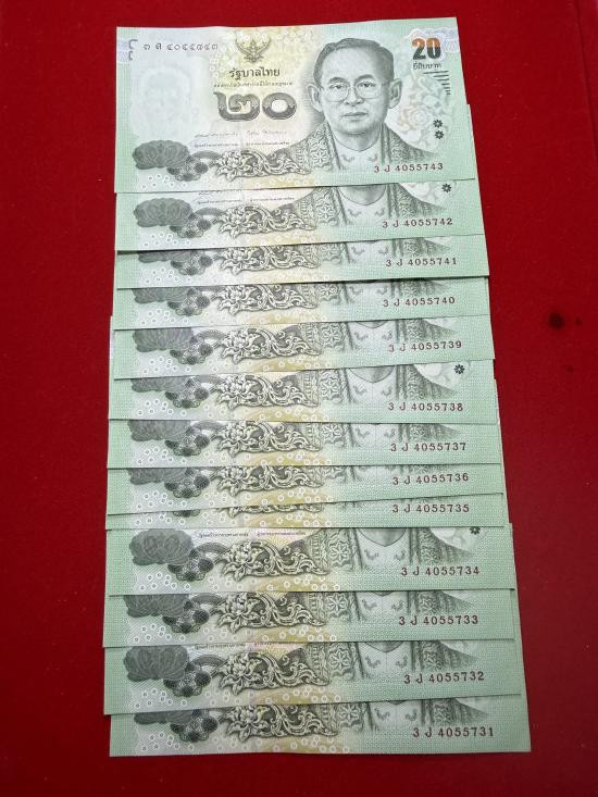 ธนบัตร 20 รัชกาลที่ 9 เลขเรียง สภาพ UNC (13 ใบ เคาะเดียว 290) |