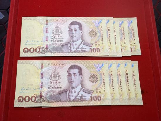 ธนบัตร 100 รัชกาลที่ 10 สภาพ UNC (10 ใบ เคาะเดียว 1030) |
