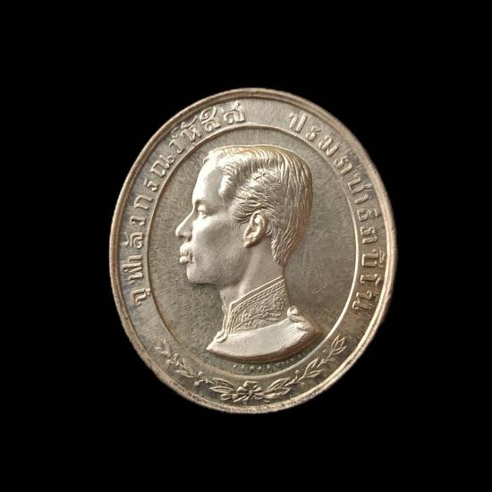 เหรียญ ร.5 ทรงยินดี พระสยามเทวาธิราช เนื้อเงิน สร้างโรงพยาบาลพานทอง ปี 2535 |
