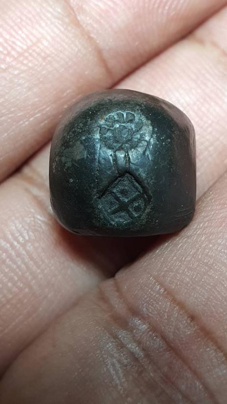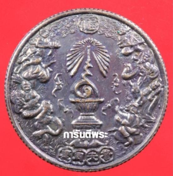 เหรียญเนื้อเงิน ร 5 ด้านหน้ามีจารหรืออักขระยันต์ สภาพใช้ตามรูปราคาเบาๆ |
