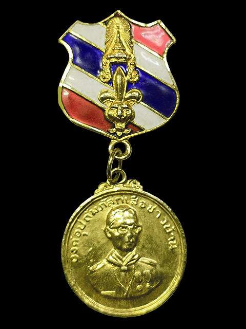 ***เหรียญแถบองค์อุปถัมภ์ลูกเสือชาวบ้าน ในหลวงรัชกาลที่ ๙ เนื้อกะไหล่ทองลงยา*** |