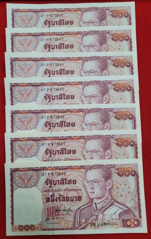วัดใจ ธนบัตรในหลวง รัชกาลที่ ๙ ชนิดราคา 100 บาท จำนวน 2 ฉบับ จาก 2 รุ่น พิเศษทั้งสองใบ ลงท้ายด้วยเลขหาม เคาะเดียวแดง 20 บาท |