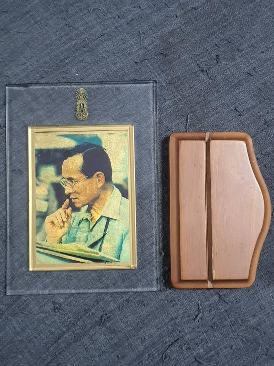 พระบรมฉายาลักษณ์ทองคำ ในหลวงร.9 ทรงเสด็จครองสิริสมบัติครบ 50 ปี ปี 2539 พร้อมฐานไม้ |