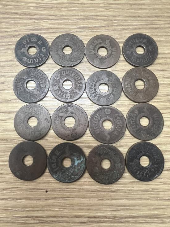เหรียญสตางค์รูจำนวน 16 เหรียญ |