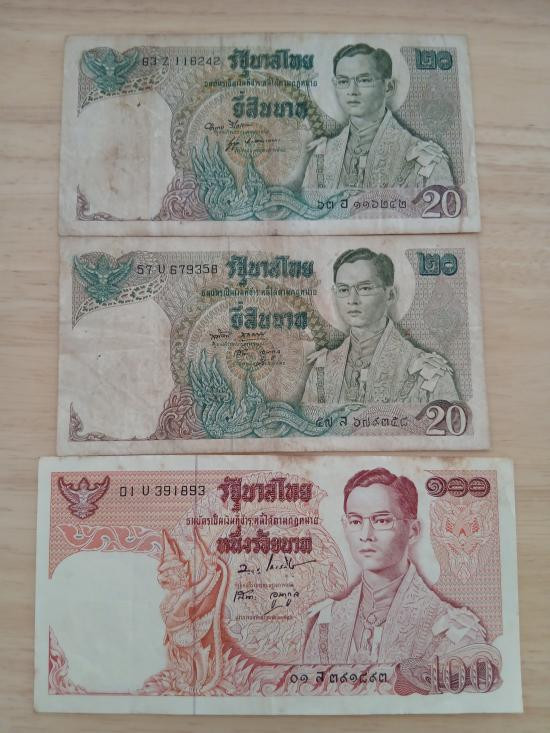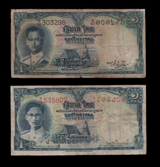 วัดใจ ธนบัตร 1 บาท จำนวน 2 ฉบับรุ่นโทมัส มีทั้งหน้าหนุ่ม (นิยม) เลขแดง ลายน้ำพานรัฐธรรมนูญ และรุ่นโทมัส หน้าธรรมดา หายากมาก |